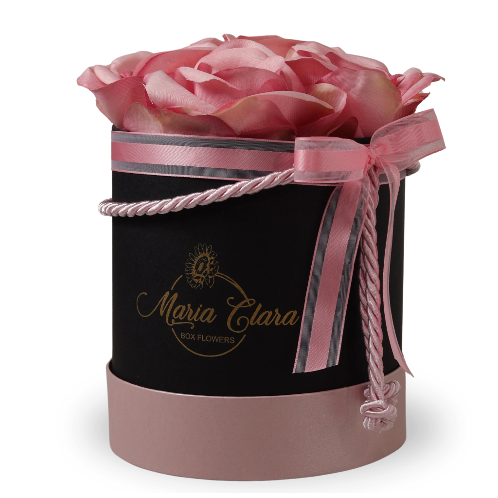 Caixa M: Tamanho 17 X 17 cm, composta de 6 a 8 rosas.