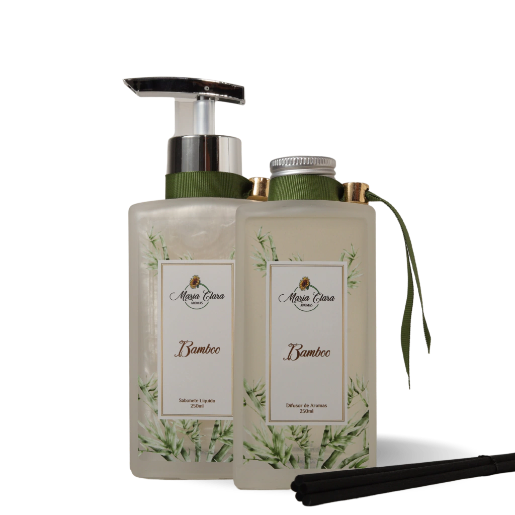 COMPOSIÇÃO: 1 frasco de Difusor Bamboo e 1 Sabonete Liquido Bamboo